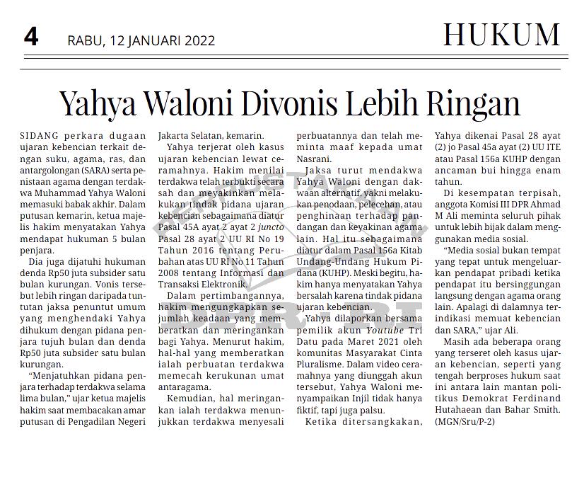 | Kata Kunci | Yahya Waloni, ujaran kebencian, sara, suku, agama, ras, antargolongan, UU RI no. 11 tahun 2008, Informasi dan transaksi elektronik, Youtube |