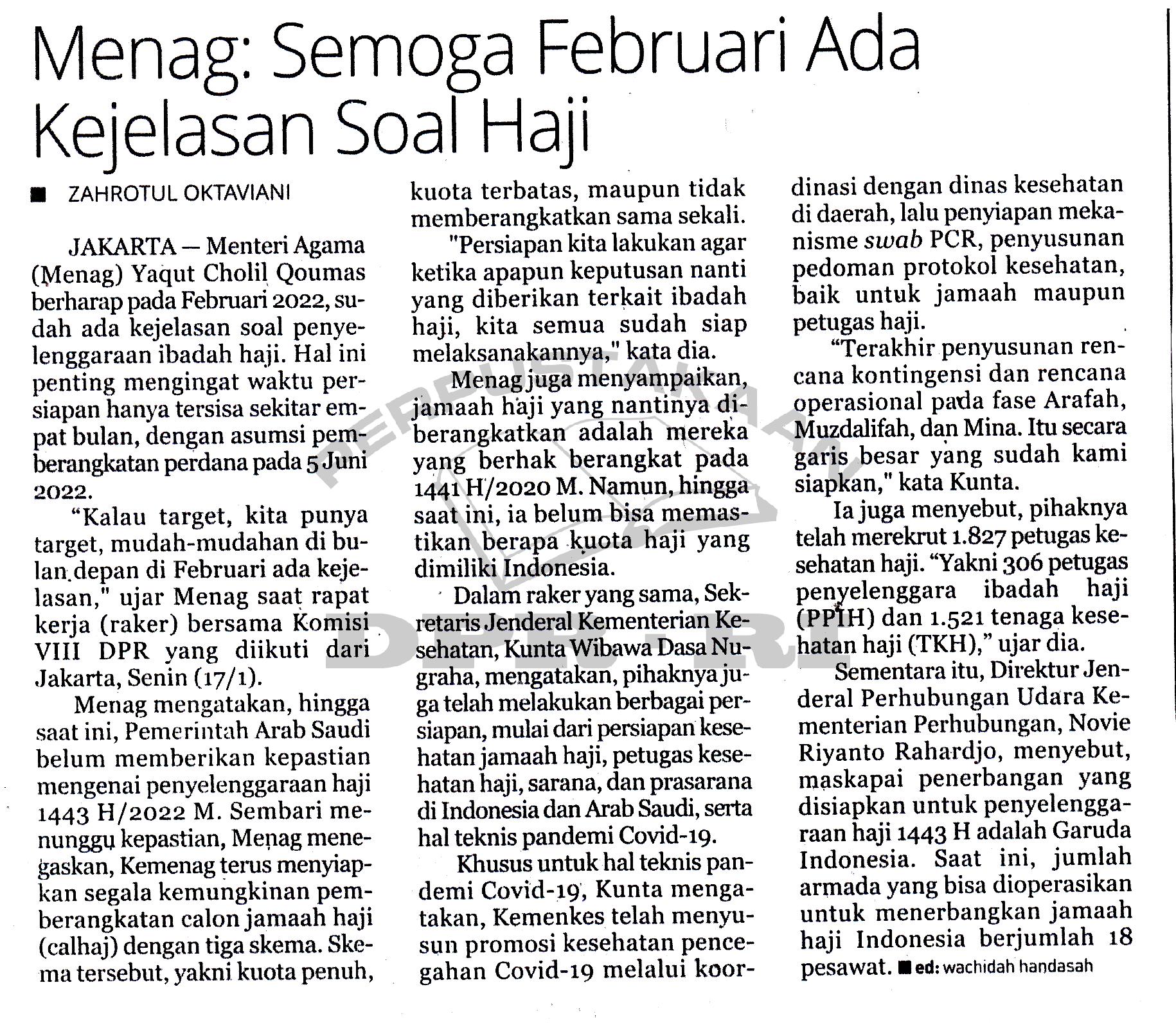 | Judul | Menag: Semoga Februari Ada Kejelasan Soal Haji |