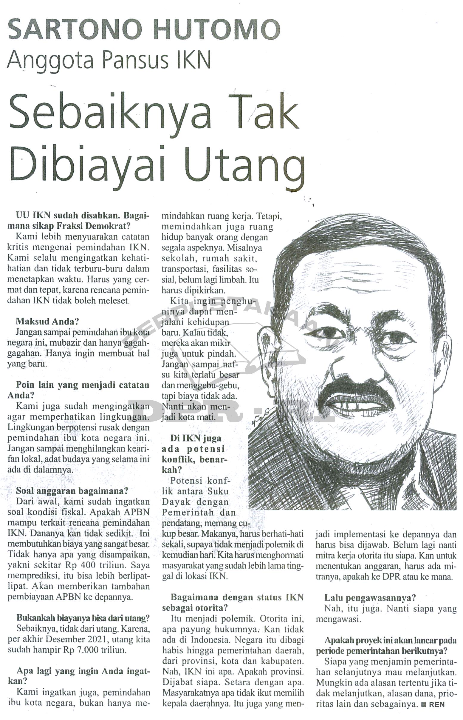 | Kata Kunci | Undang Undang IKN, Sartono Hutomo, Pansus IKN, polemik, Pemerintah, mubazir, kearifan lokal, budaya, APBN, Ibu KOta Negara, Suku Dayak, |
