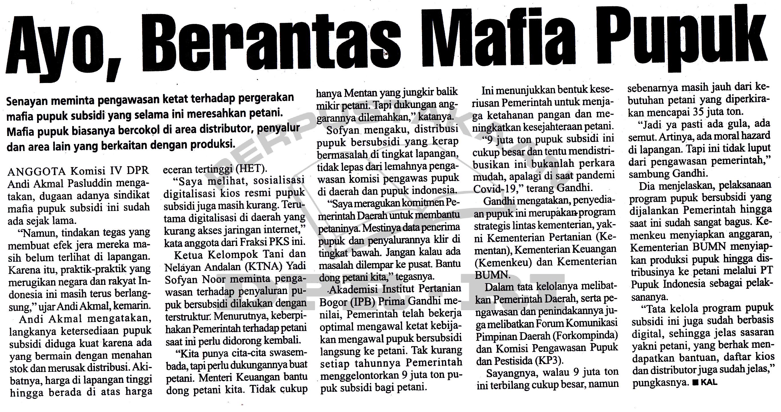 Mafia Pupuk, Komisi IV, Andi Akmal Pasluddin, HET, Kementan,