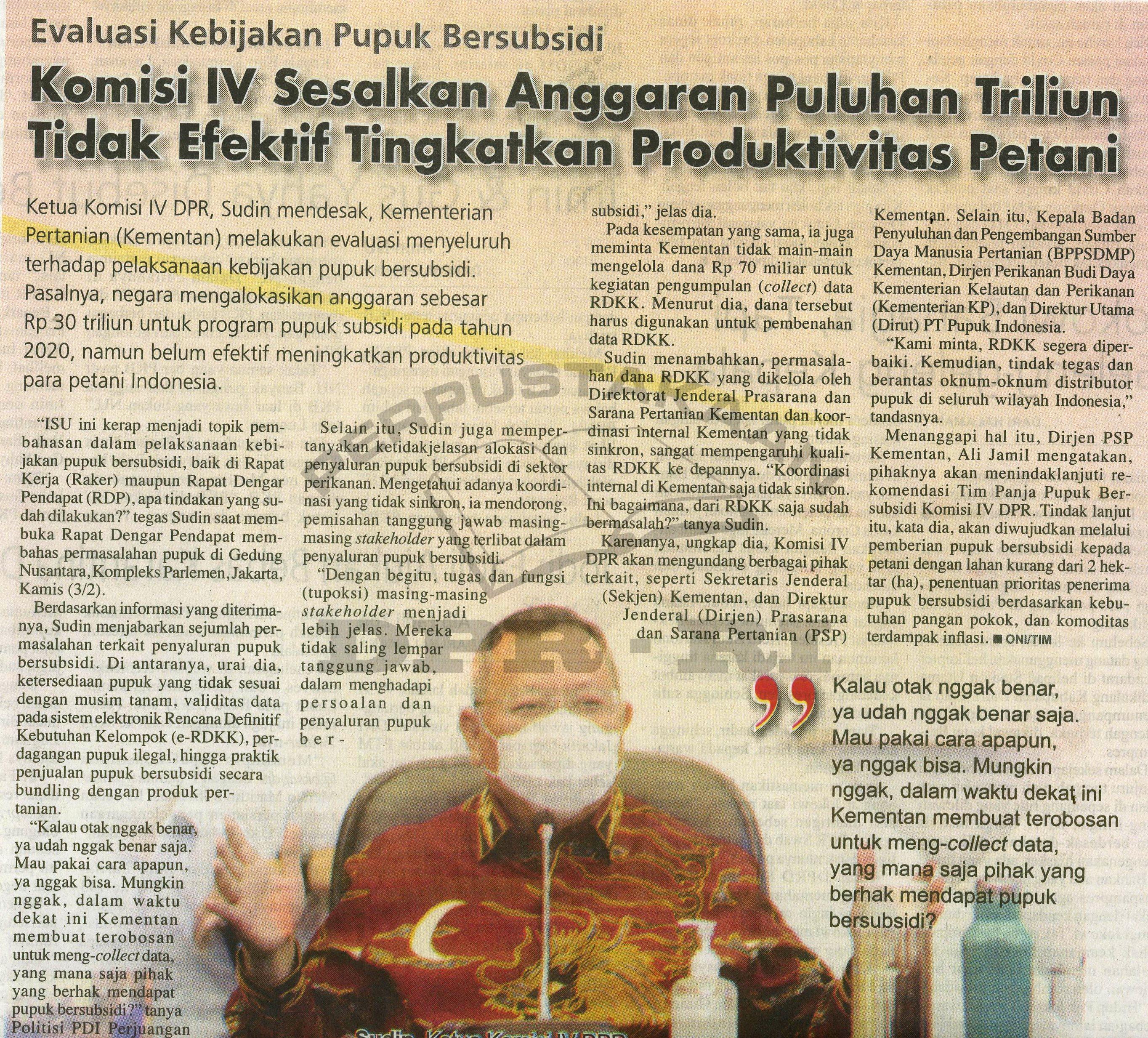 | Judul | Komisi IV Sesalkan Anggaran Puluhan Triliun Tidak Efektif Tingkatkan Produktivitas Petani |