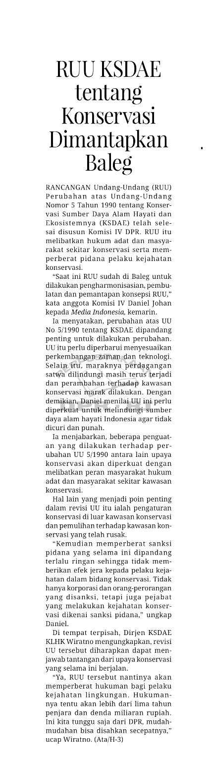 | Kata Kunci | RUU KSDAE, konservasi, sumber daya alam hayati, ekosistem, Daniel Johan (Anggota Komisi IV), perubahan UU 5 tahun 1990 tentang KSDAE, Wiratno (Dijen KSDAE KLHK) |