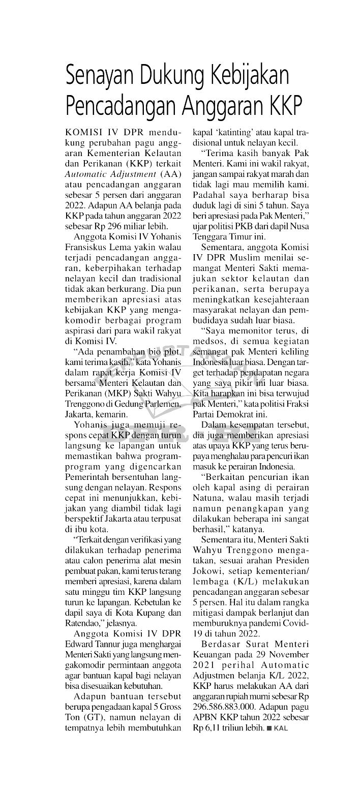 | Judul | Senayan dukung kebijakan pencadangan anggaran KKP |