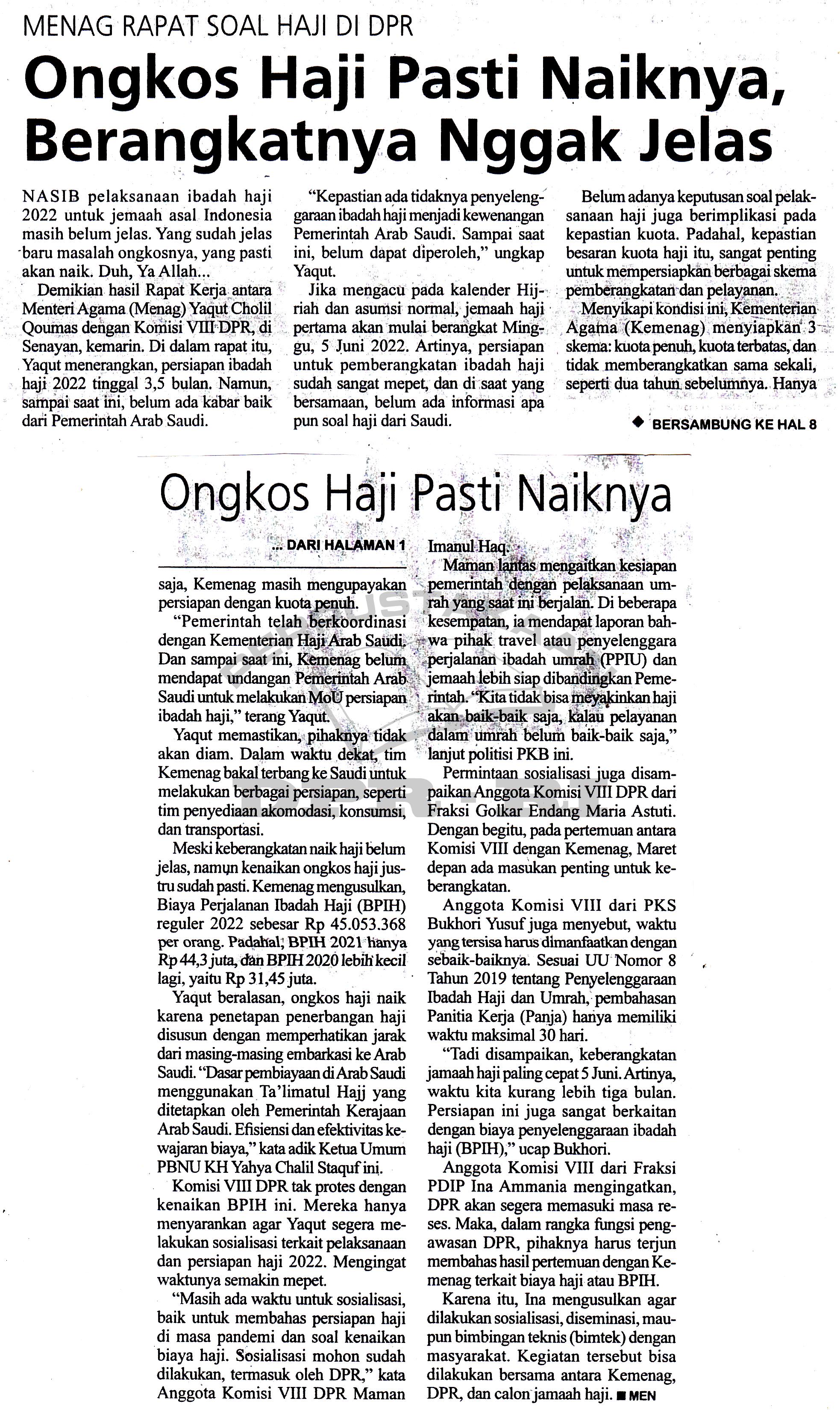 | Kata Kunci | Raker, Menag, Yaqut Cholil Qoumas. Komisi VIII, BPIH, Bukhori Yusuf |