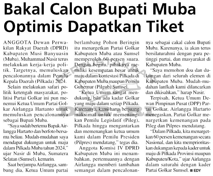 | Kata Kunci | Calon Pilkada 2024, Calon Bupati Muba, Partai Golkar, Muhammad Nasir, Airlangga Hartanto |