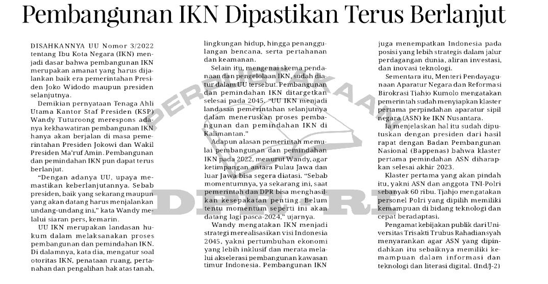 | Judul | Pembangunan IKN Dipastikan Terus Berlanjut |