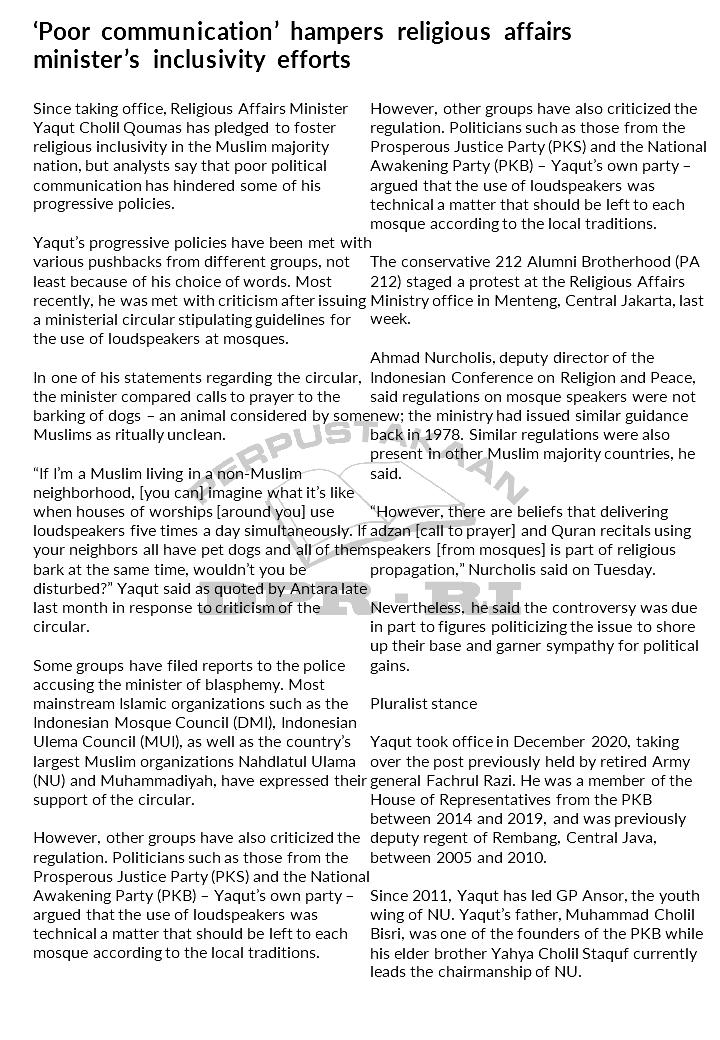 | Judul | 'Poor Communication' hampers religious affairs minister's inclusivity efforts |