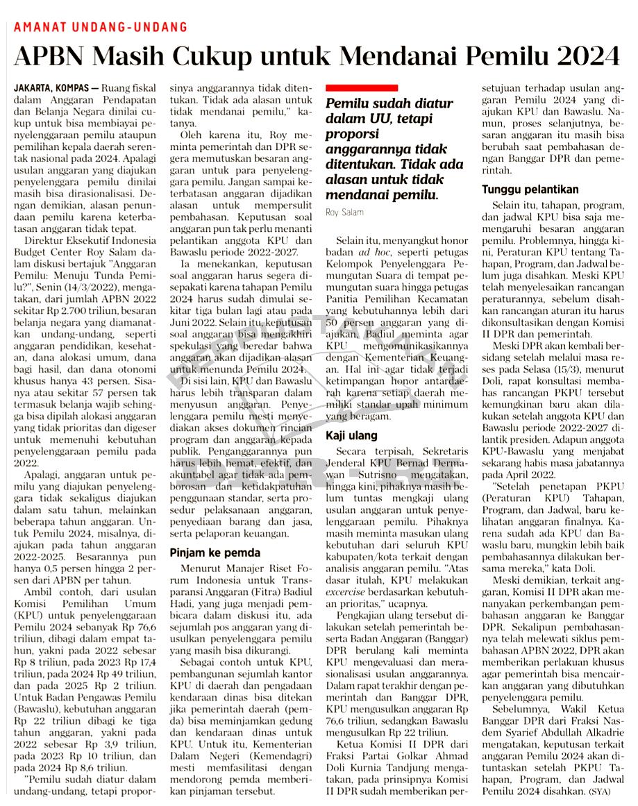 | Judul | Amanat Undang-Undang : APBN Masih Cukup Untuk Mendanai Pemilu 2024 |