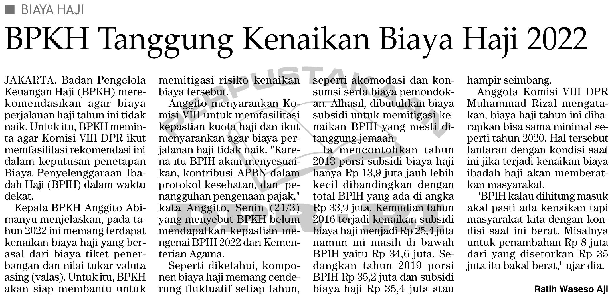 | Judul | Biaya Haji - BPKH Tanggung Kenaikan Biaya Haji 2022 |