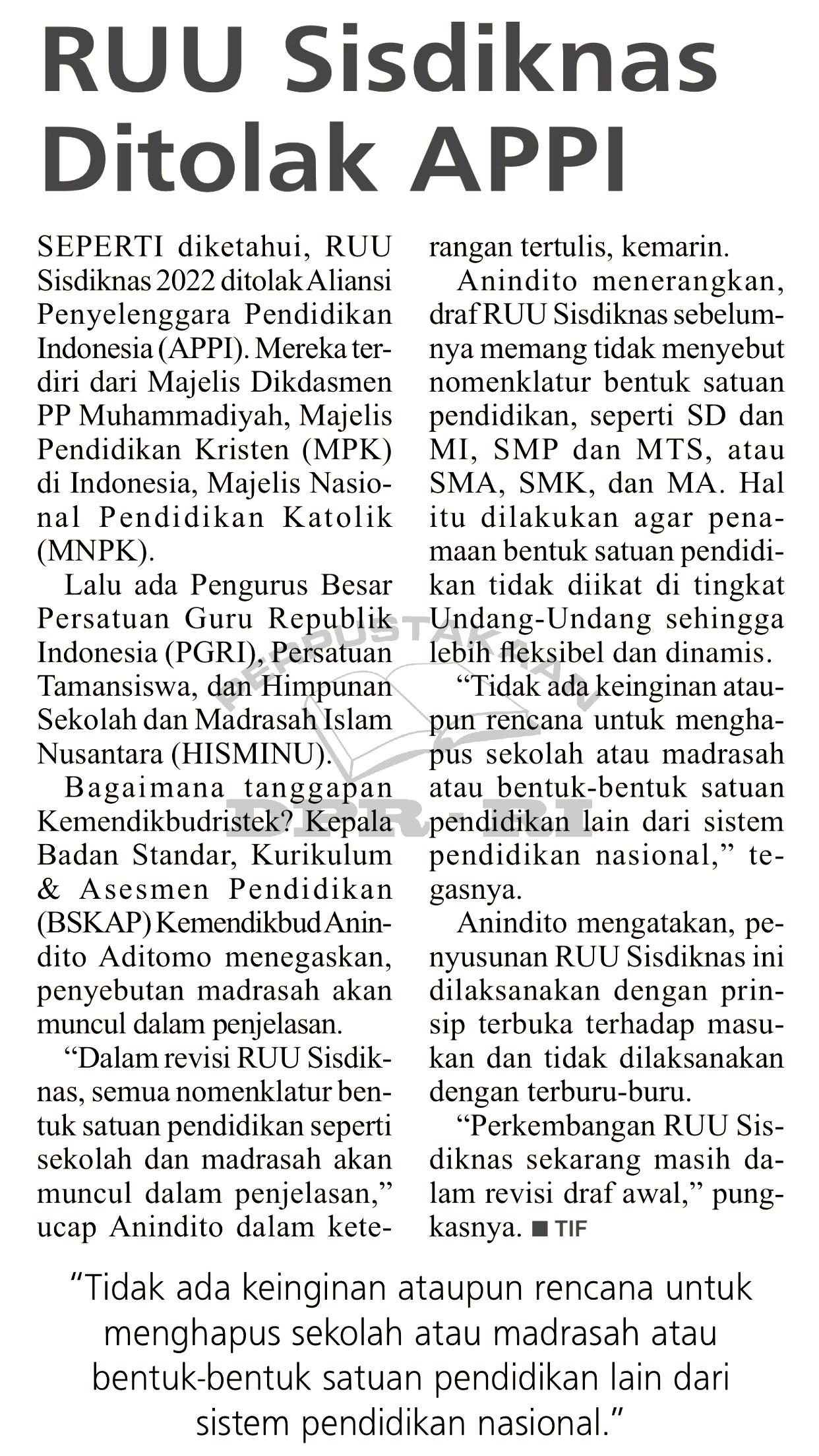 | Judul | RUU Sisdiknas Ditolak APPI |