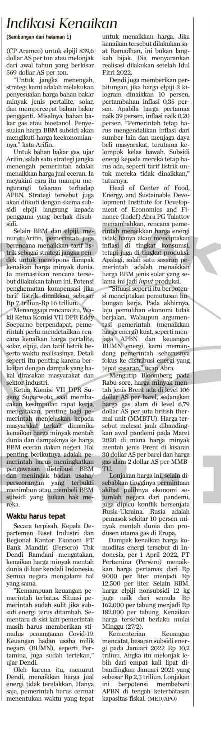 | Judul | Indikasi kenaikan harga BBM menguat |