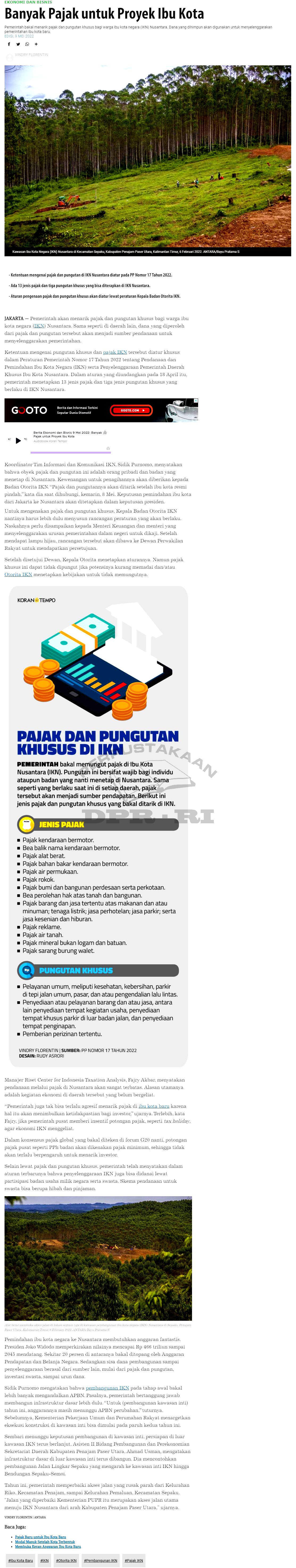 | Kata Kunci | ibu kota negara (IKN), Sidik Purnomo, Kepala Otorita, Riset Center for Indonesia Taxation Analysis, Pemindahan ibu kota negara |