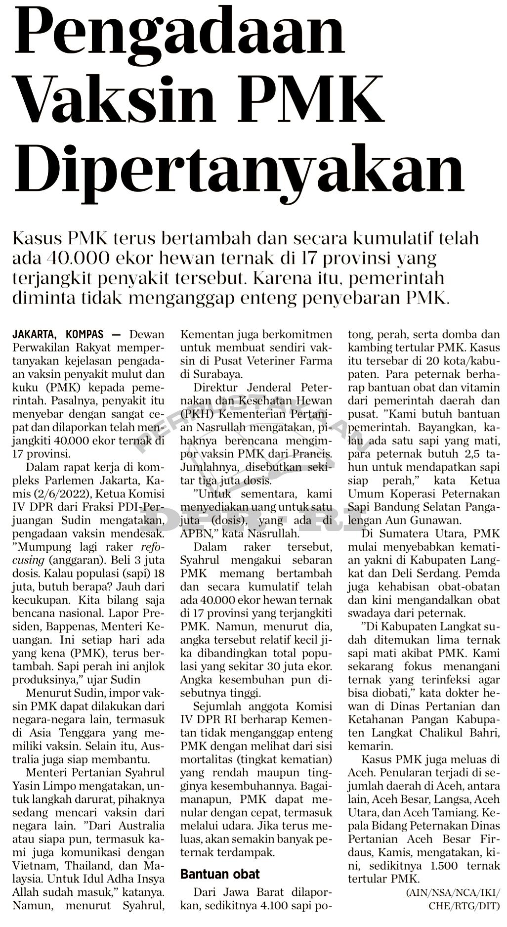 Pengadaan vaksin PMK Dipertanyakan
