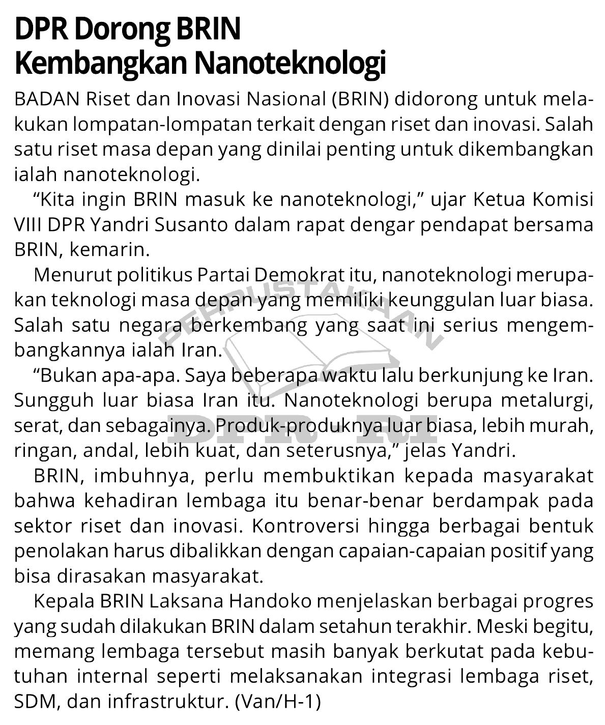 | Judul | DPR Dorong BRIN Kembangkan Nanoteknologi |