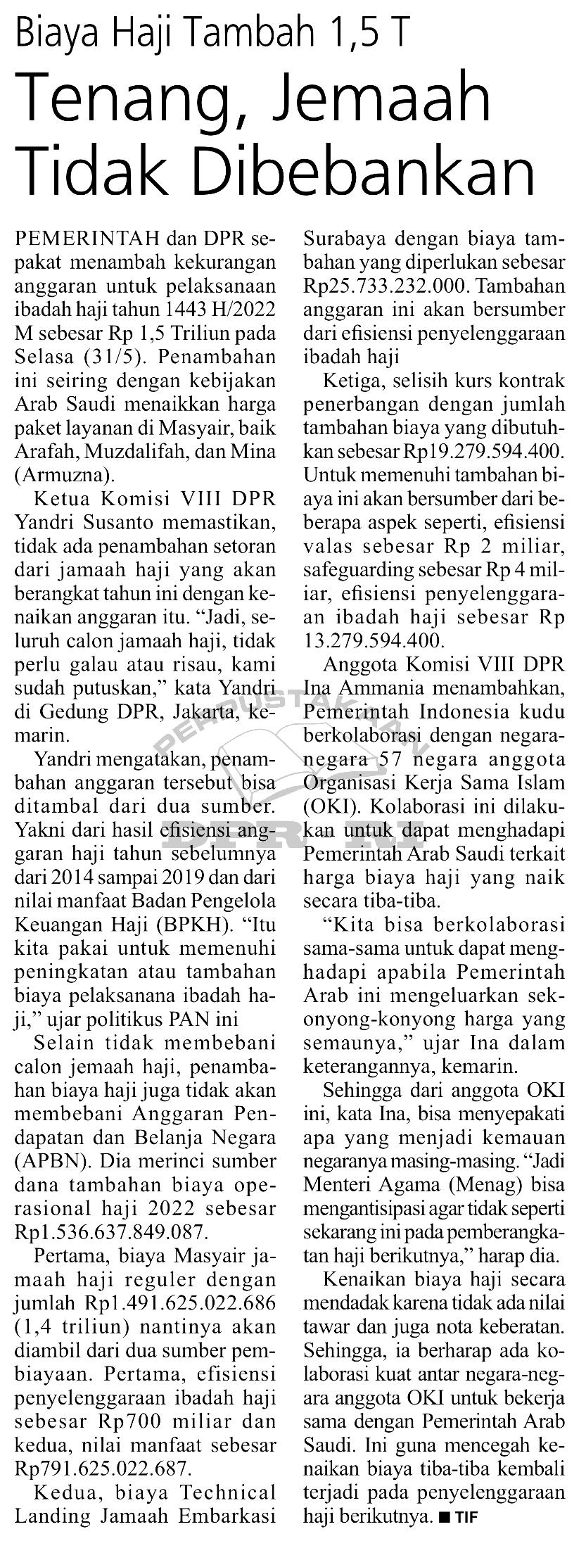 | Judul | Biaya Haji Tambah 1,5 T - Tenang, Jemaah Tidak Dibebankan |