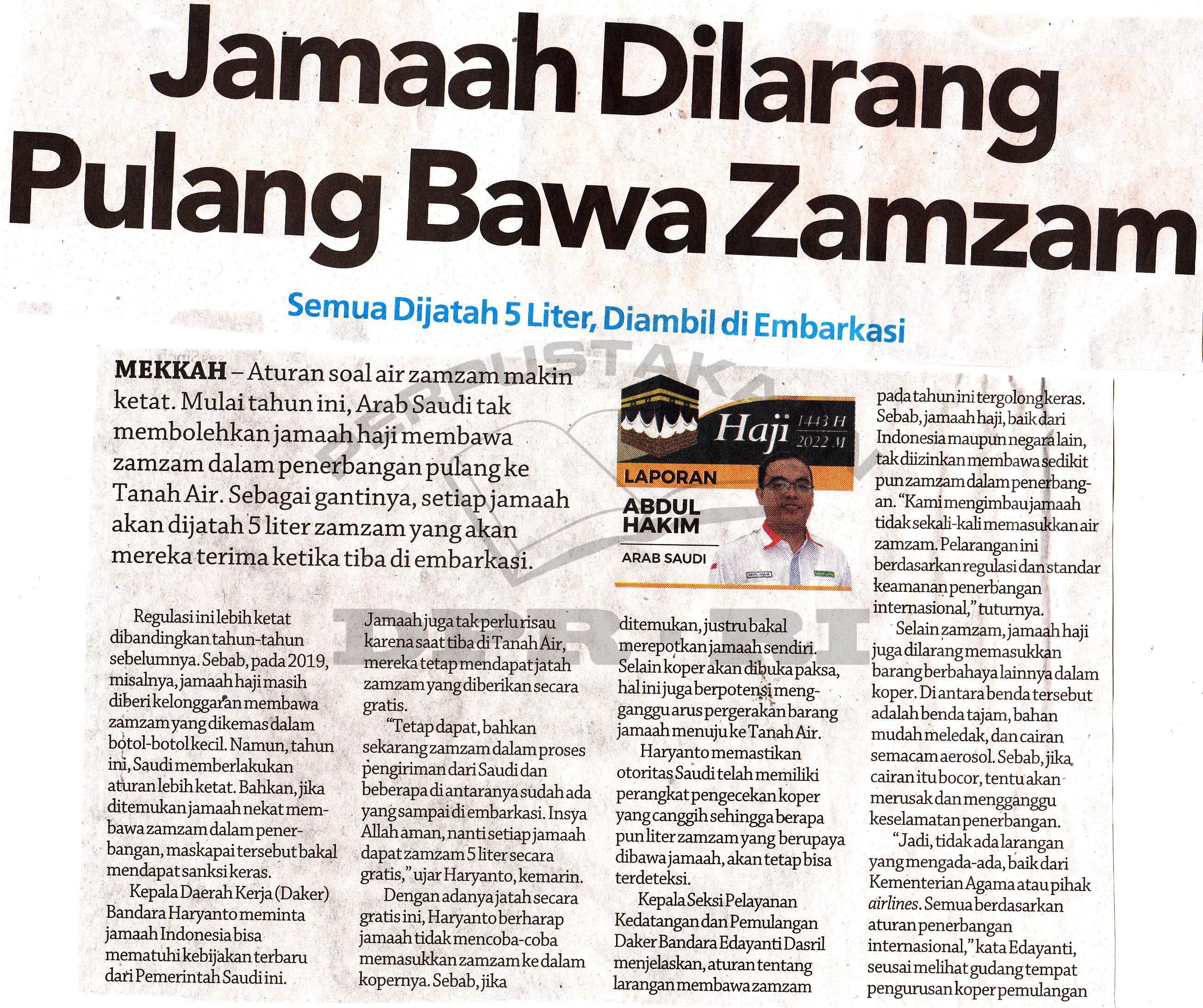 Jamaah dilarang pulang bawa zamzam