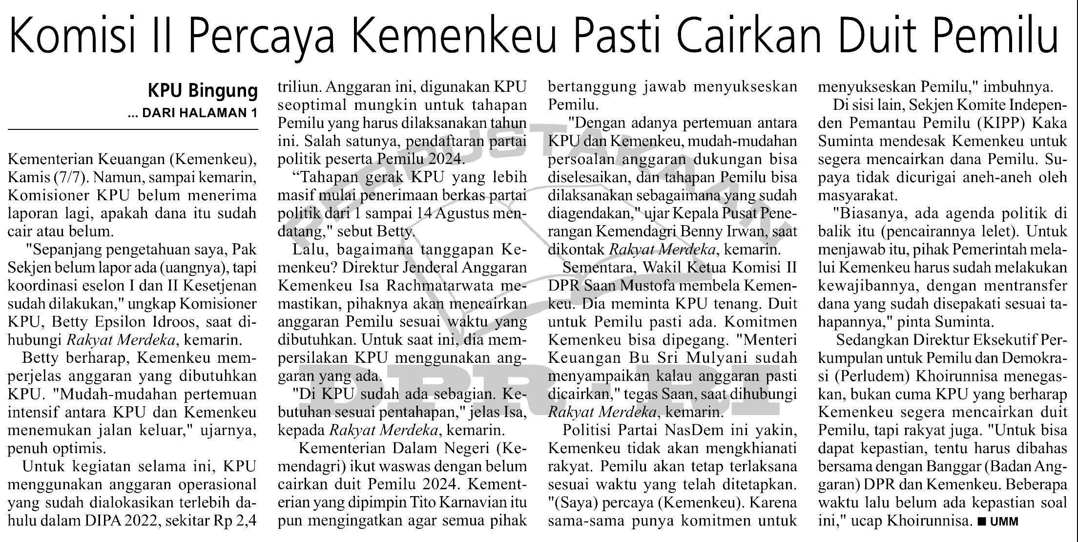 | Judul | KPU Bingung, Mau Pemilu Tapi Duit Belum Ada - Komisi II Percaya Kemenkeu Pasti Cairkan Duit Pemilu |