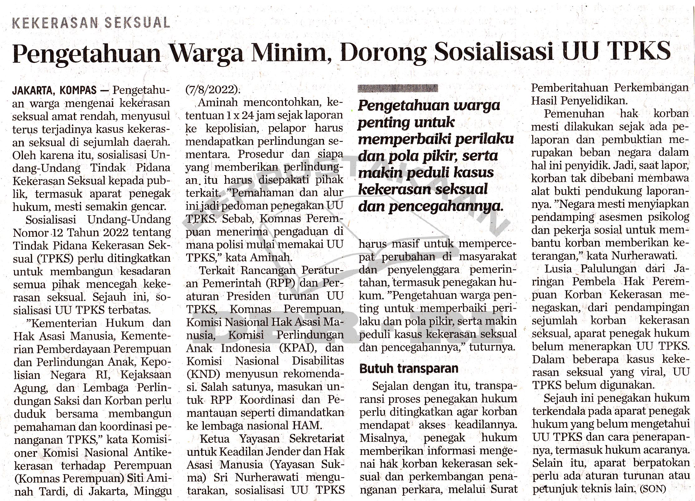 | Judul | Pengetahuan warga minim, dorong sosialisasi UU TPKS |