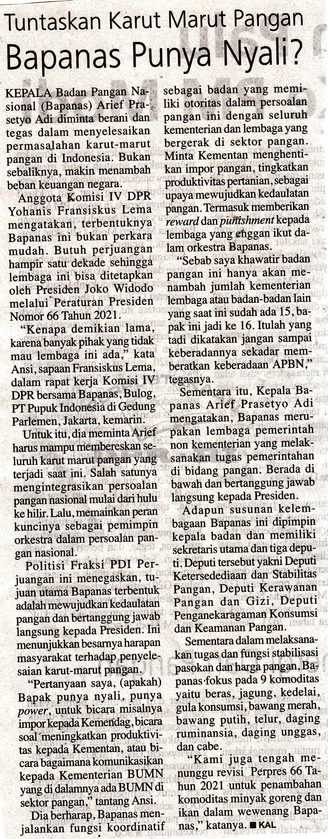 | Judul | Tuntaskan karut Marut Pangan Bapanas punya nyali? |