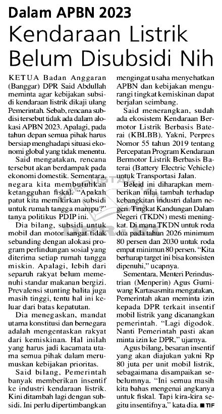| Judul | Dalam APBN 2023 - Kendaraan Listrik Belum Disubsidi Nih |