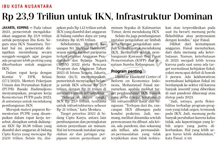 | Judul | Ibu Kota Negara: RP 23,9 Triliun untuk IKN, Infrastruktur Dominan |
