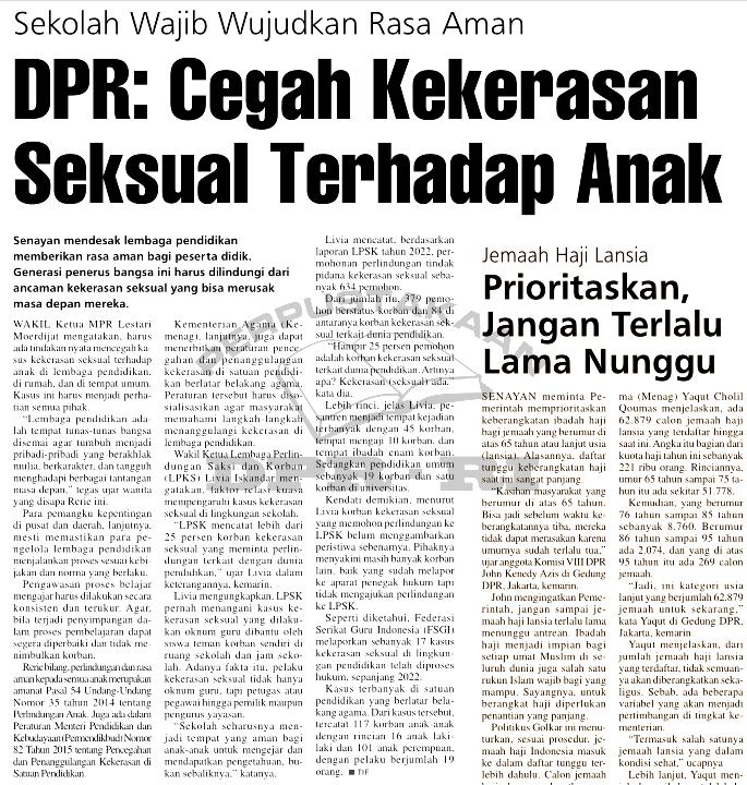 | Judul | Sekolah Wajib Wujudkan Rasa Aman, DPR: Cegah Kekerasan Seksual Terhadap Anak |