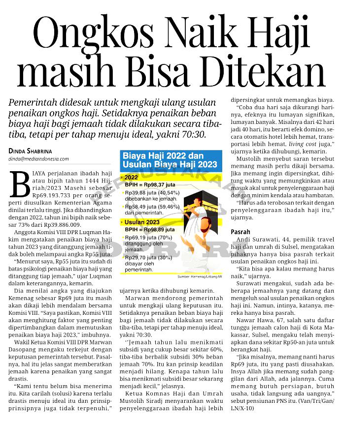 Ongkos Naik Haji masih Bisa Ditekan