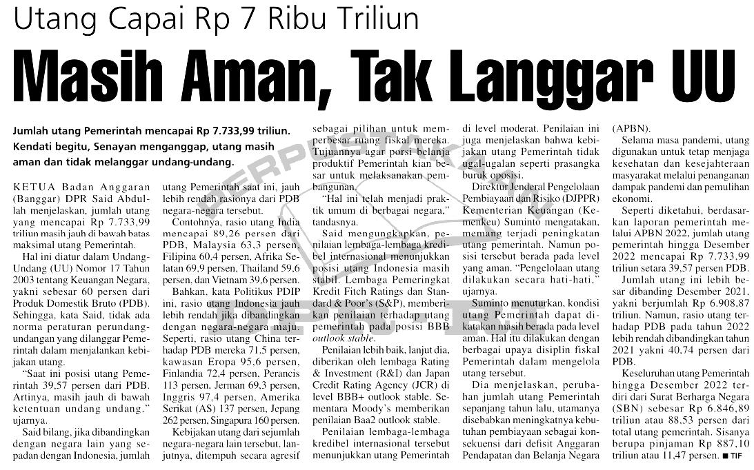 | Judul | Utang Capai Rp 7 Ribu Triliun. Masih Aman, Tak Langgar UU |