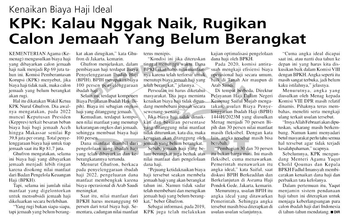 | Judul | Kenaikan Biaya Haji Ideal, KPK: Kalau Nggak Naik, Rugikan Calon Jemaah Yang Belum Berangkat |