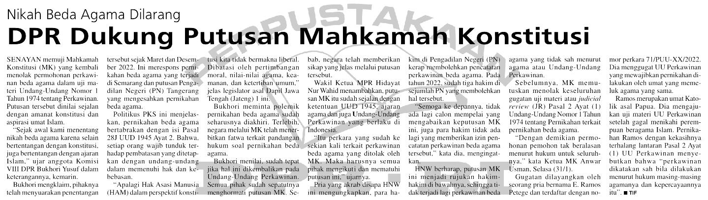 | Judul | Nikah Beda Agama Dilarang: DPR Dukung Putusan Mahkamah Konstitusi |
