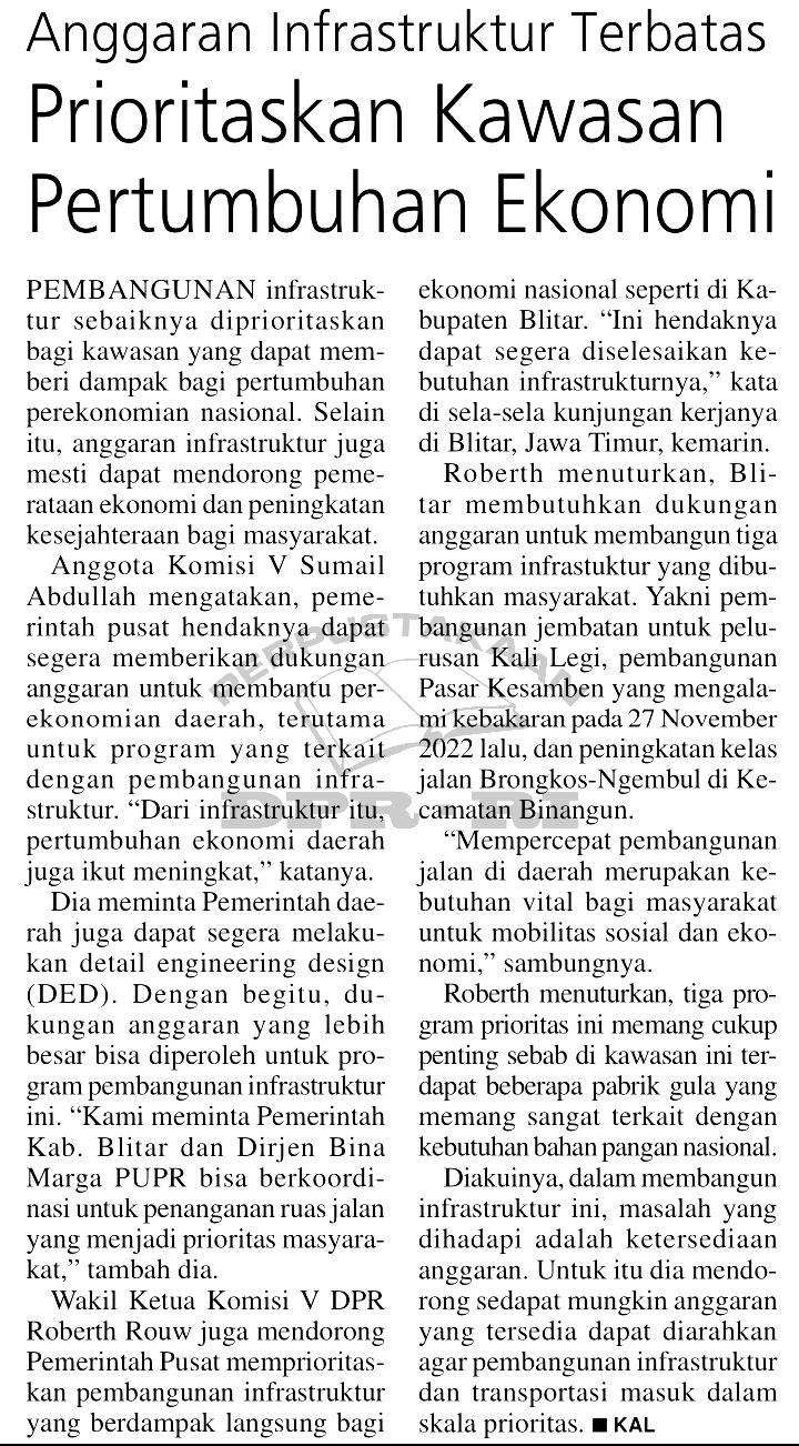 | Judul | Anggaran Infrastruktur Terbatas Prioritaskan Kawasan Pertumbuhan Ekonomi |