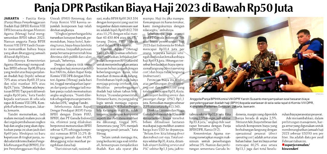 | Judul | Panja DPR Pastikan Biaya Haji 2023 di Bawah Rp50 Juta |