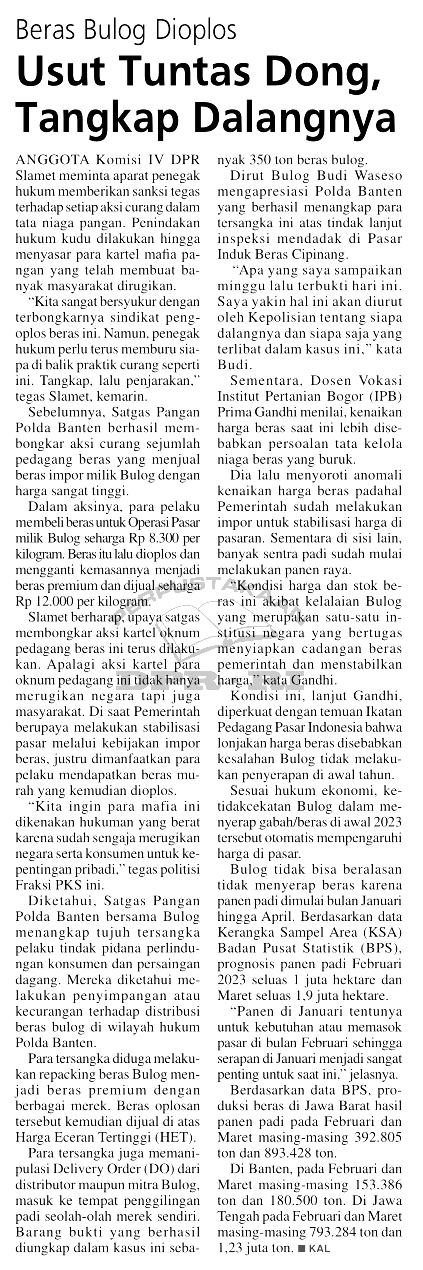 | Judul | Beras Bulog Dioplos : Usut Tuntas Dong, Tangkap Dalangnya |