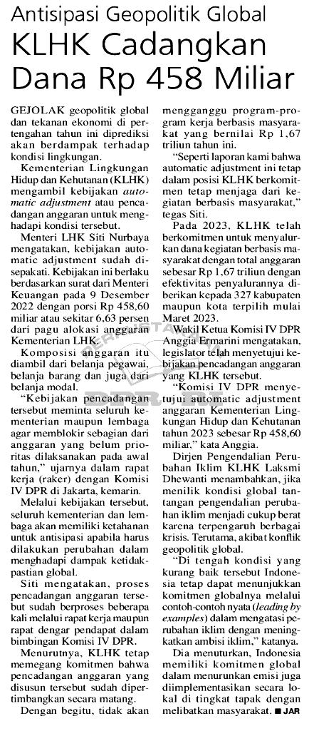 | Judul | Antisipasi Geopolitik Global, KLHK Cadangkan Dana Rp. 458 M |