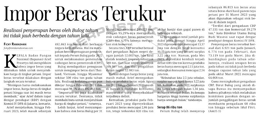 | Kata Kunci | Bapanas,Badan Pangan Nasional,Arief Prasetyo Adi,impor,Thailand,Vietnam,Myanmar,panen,petani |