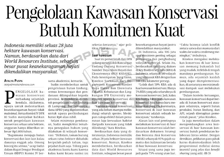 | Judul | Pengelola kawasan konservasi butuh komitmen kuat |