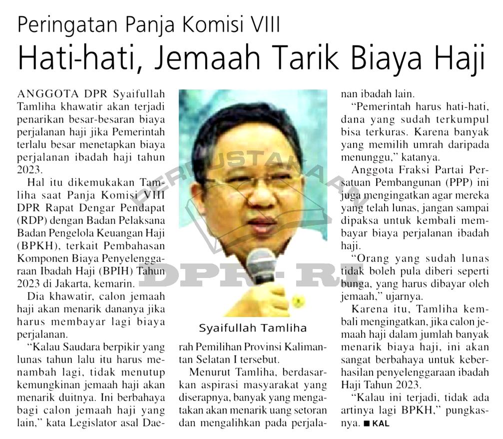 | Judul | Peringatan Panja Komisi VIII : Hati-Hati, Jemaah Tarik Biaya Haji |