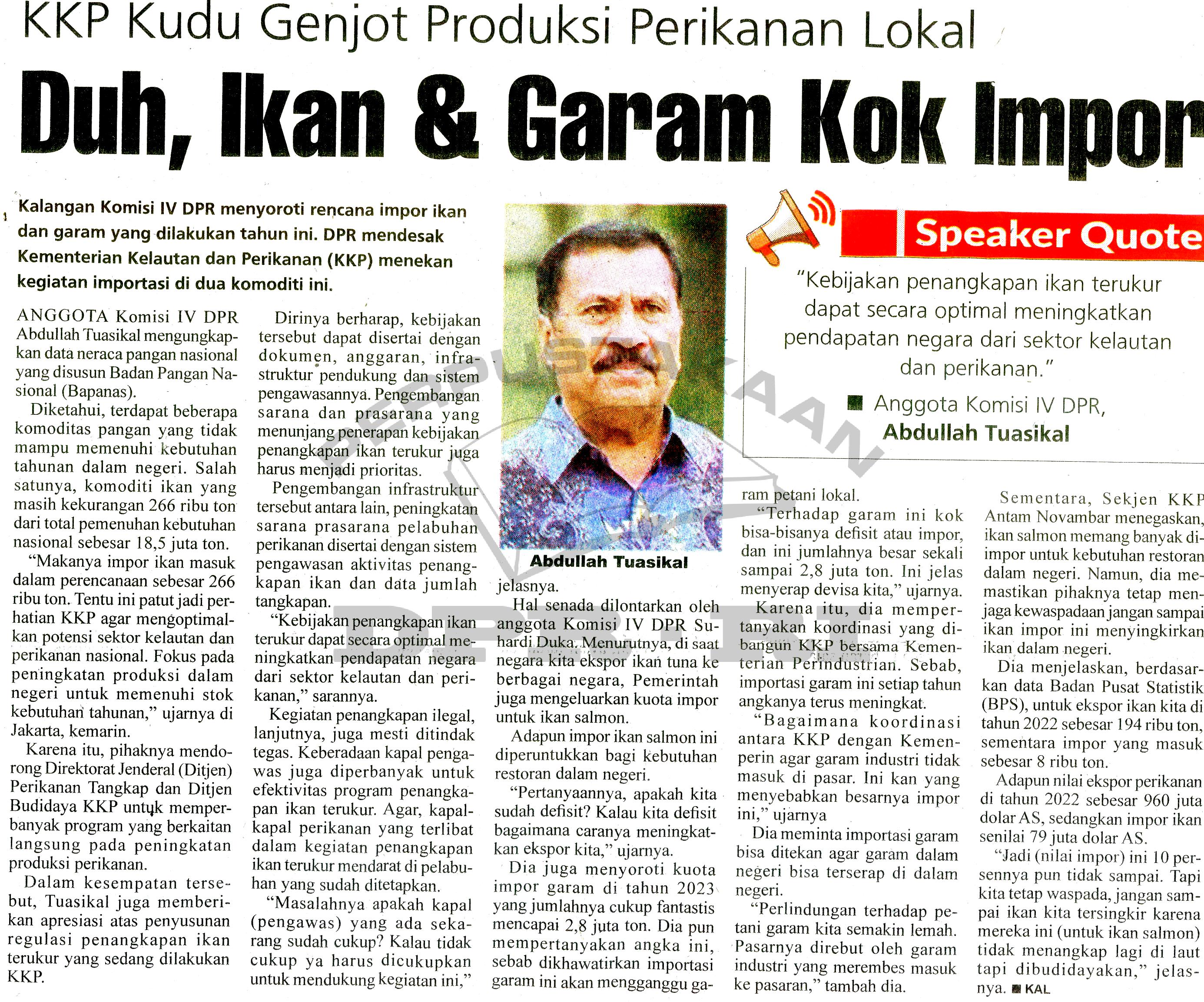 | Judul | KKP Kudu Genjot Produksi Perikanan Lokal, Duh, Ikan & Garam Kok Impor |