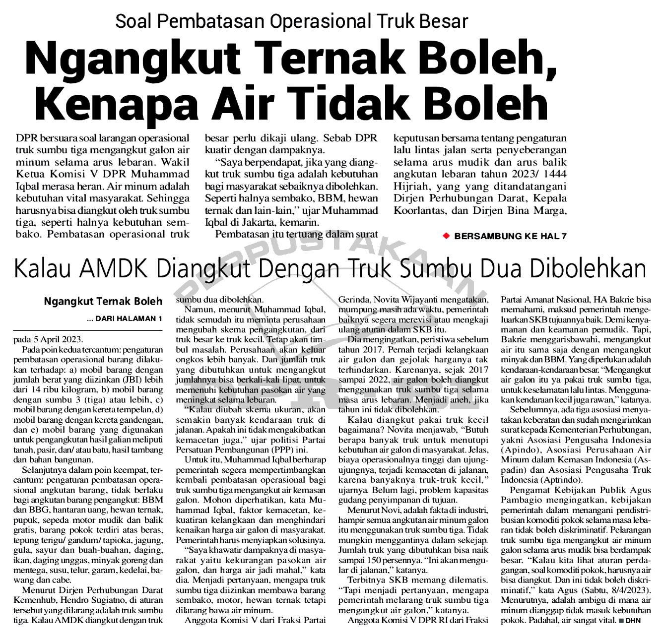 | Judul | Soal Pembatasan Operasional Truk Besar : Ngangkut Ternak Boleh, Kenapa Air Tidak Boleh |
