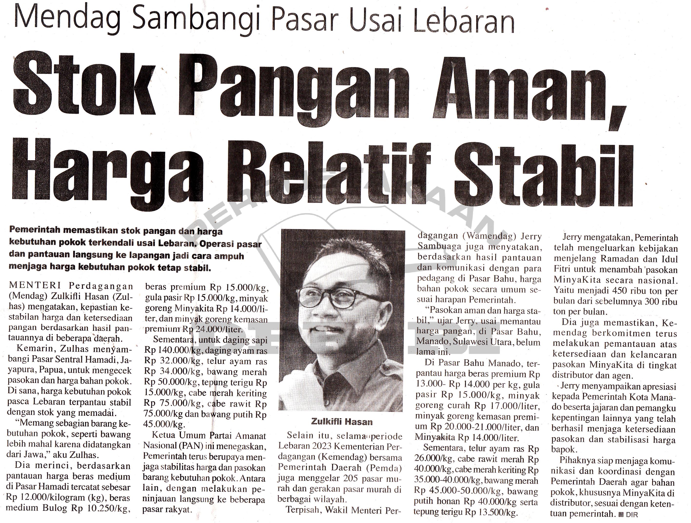 Stok pangan aman, harga relatif stabil