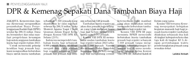 | Judul | DPR &Kemenag sepakati dana tambahan biaya haji |