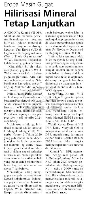 | Kata Kunci | Mukhtarudin,industri,uni eropa,WTO,World Trade Organization,Presiden,Jokowi,pemilu,undang-undang,minerba,nikel,diplomasi,perdagangan,smelter,internasional,mentah,Dony Maryadi Oekon,polemik,pelarangan |
