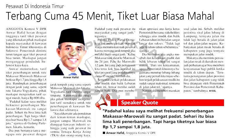 | Judul | Pesawat di Indonesia Timur, terbang cuma 45 menit, tiket luar biasa mahal |