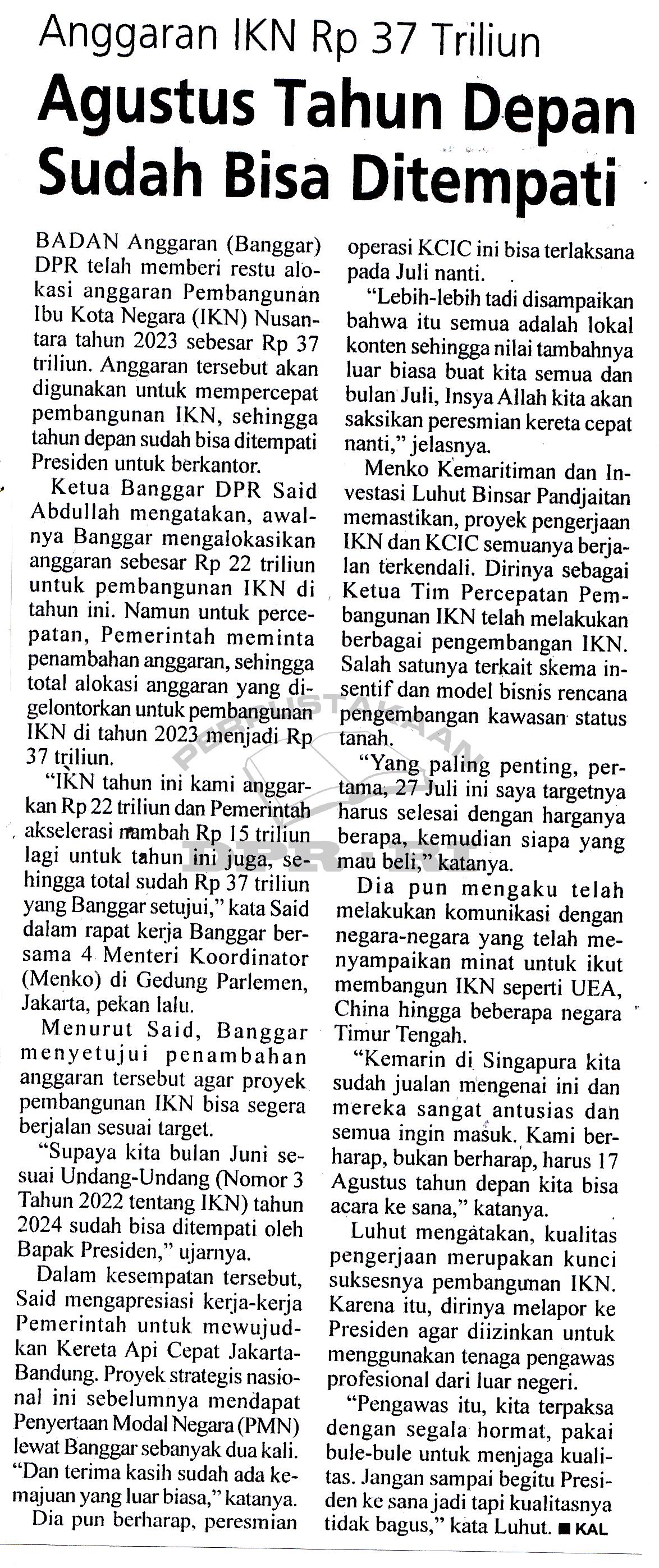 | Kata Kunci | Anggaran IKN Rp 37 Triliun, Banggar, Said Abdullah, |