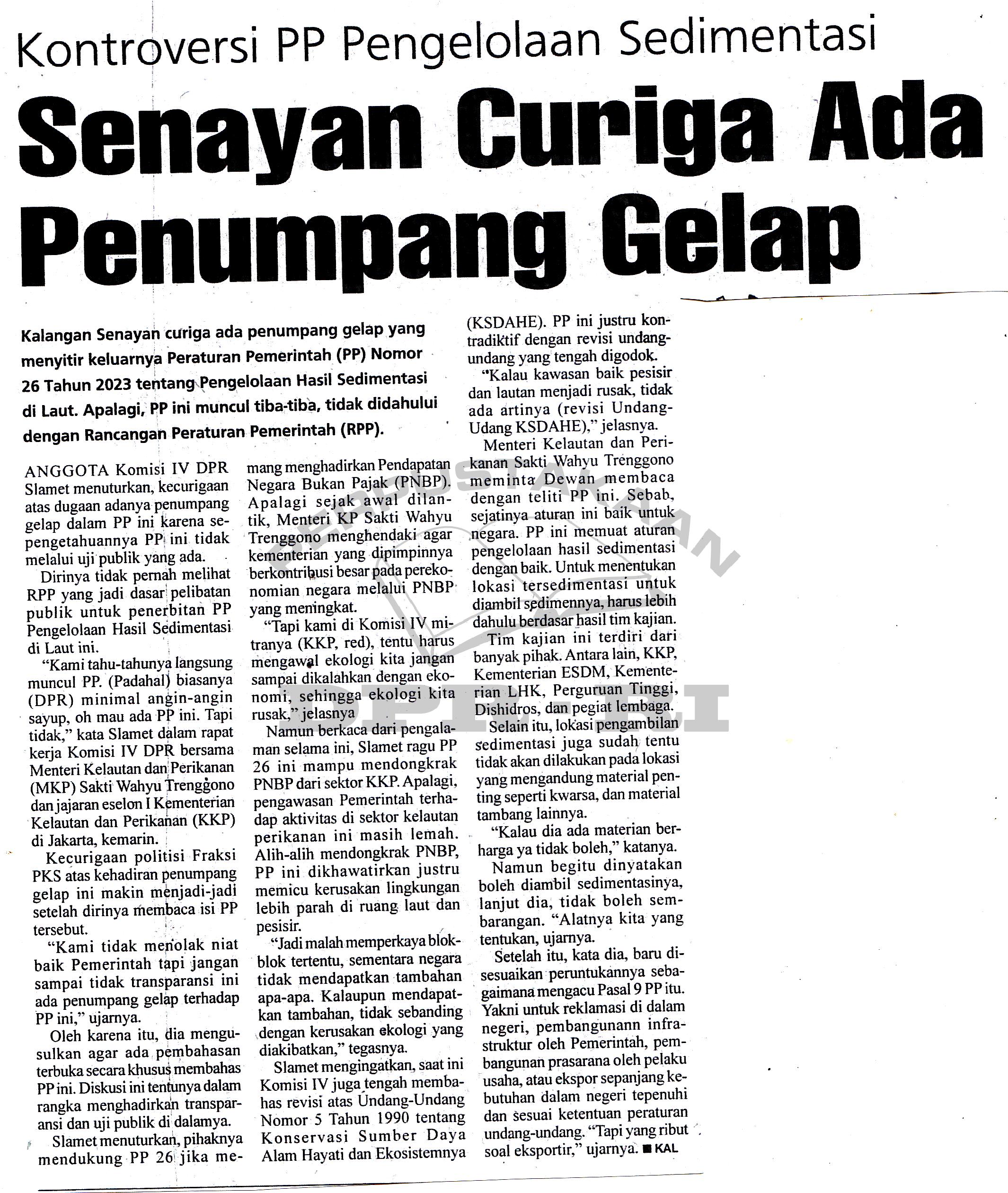 | Kata Kunci | Penumpang Gelap, Kontroversi PP Pengelolaan Sedimentasi, Komisi IV, Slamet, Menteri Kelautan dan Perikanan, Sakti Wahyu Trenggono |