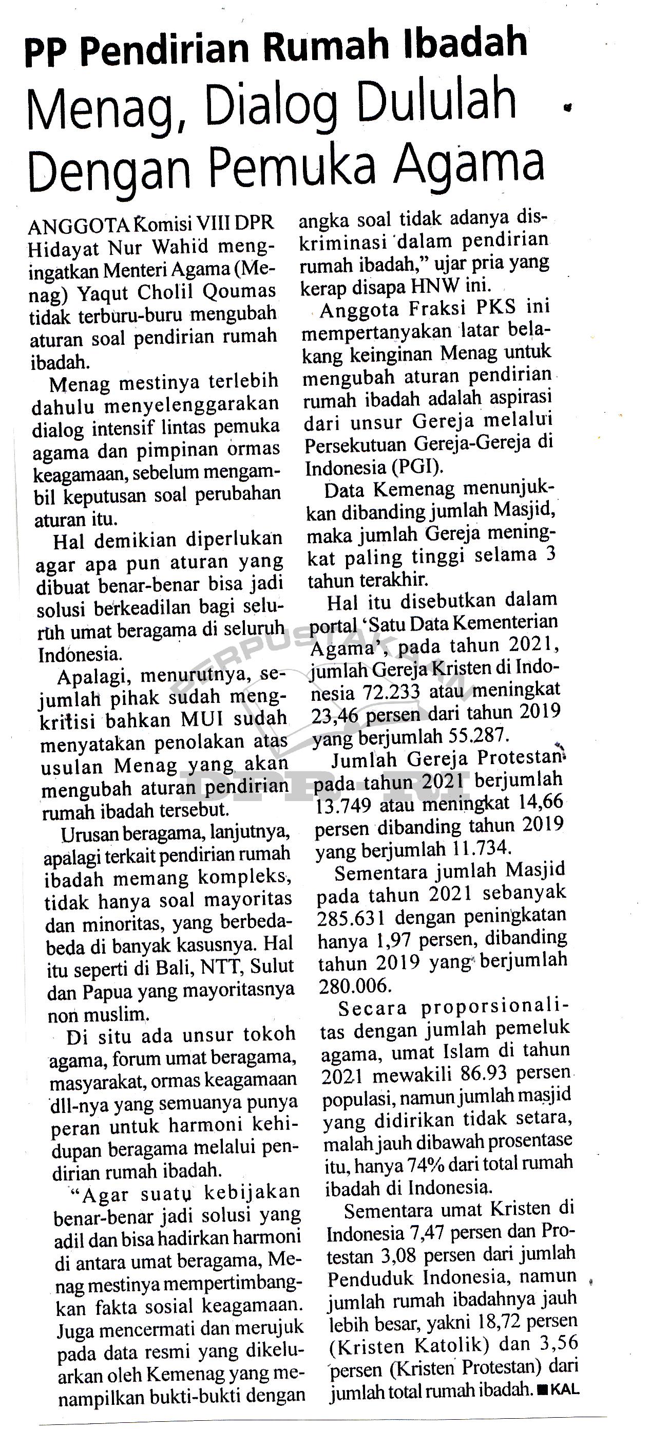 | Kata Kunci | PP Pendirian Rumah Ibadah, Komisi VIII, Hidayat Nur Wahid, Menag, Yaqut Cholil Qoumas |