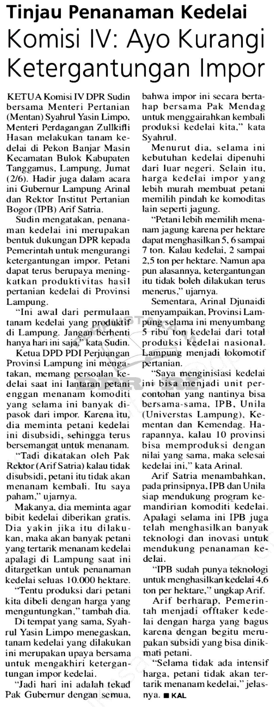 | Judul | Tinjau penanaman kedelai, komisi IV: Ayo kurangi ketergantungan Import |