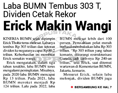 | Judul | Laba BUMN tembus 303 T, dividen cetak rekor. Erick makin wangi |