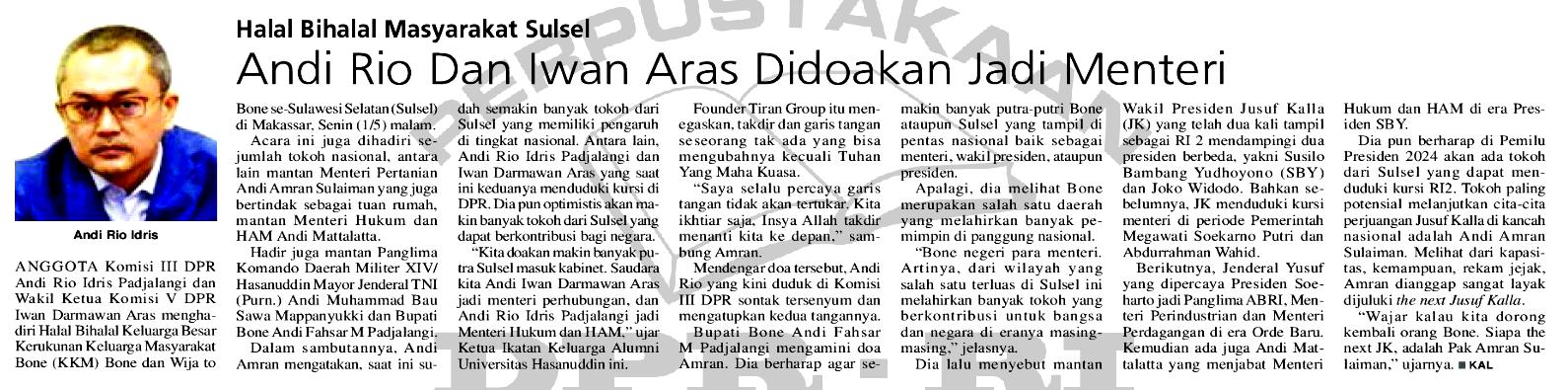 | Judul | Halal Bihalal Masyarakat Sulsel. Andi Rio dan Iwan Aras didoakan jadi Menteri |