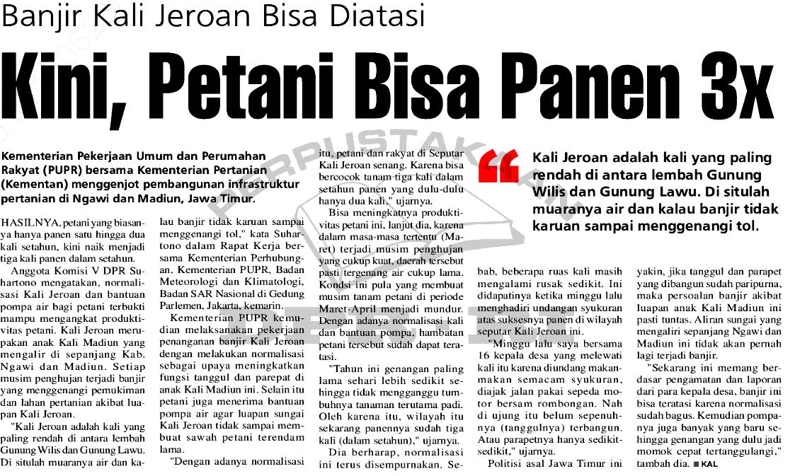 | Judul | Banjir kali jeroan bisa diatasi. Kini petani bisa panen 3x |